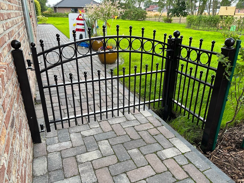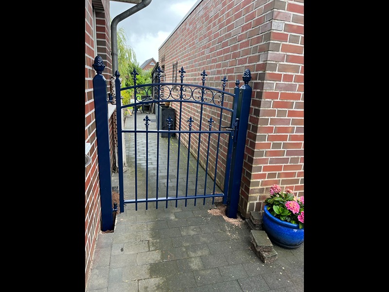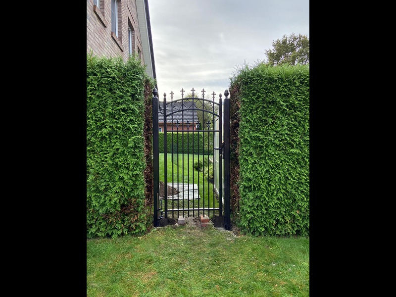Alle Pforten werden individuell nach Maß angefertigt – sowohl in der Höhe als auch in der Breite. Alle Ausführungen sind feuerverzinkt, grundiert und mit Pulverbeschichtung eingebrannt. Jede RAL-Farbe ist wählbar.